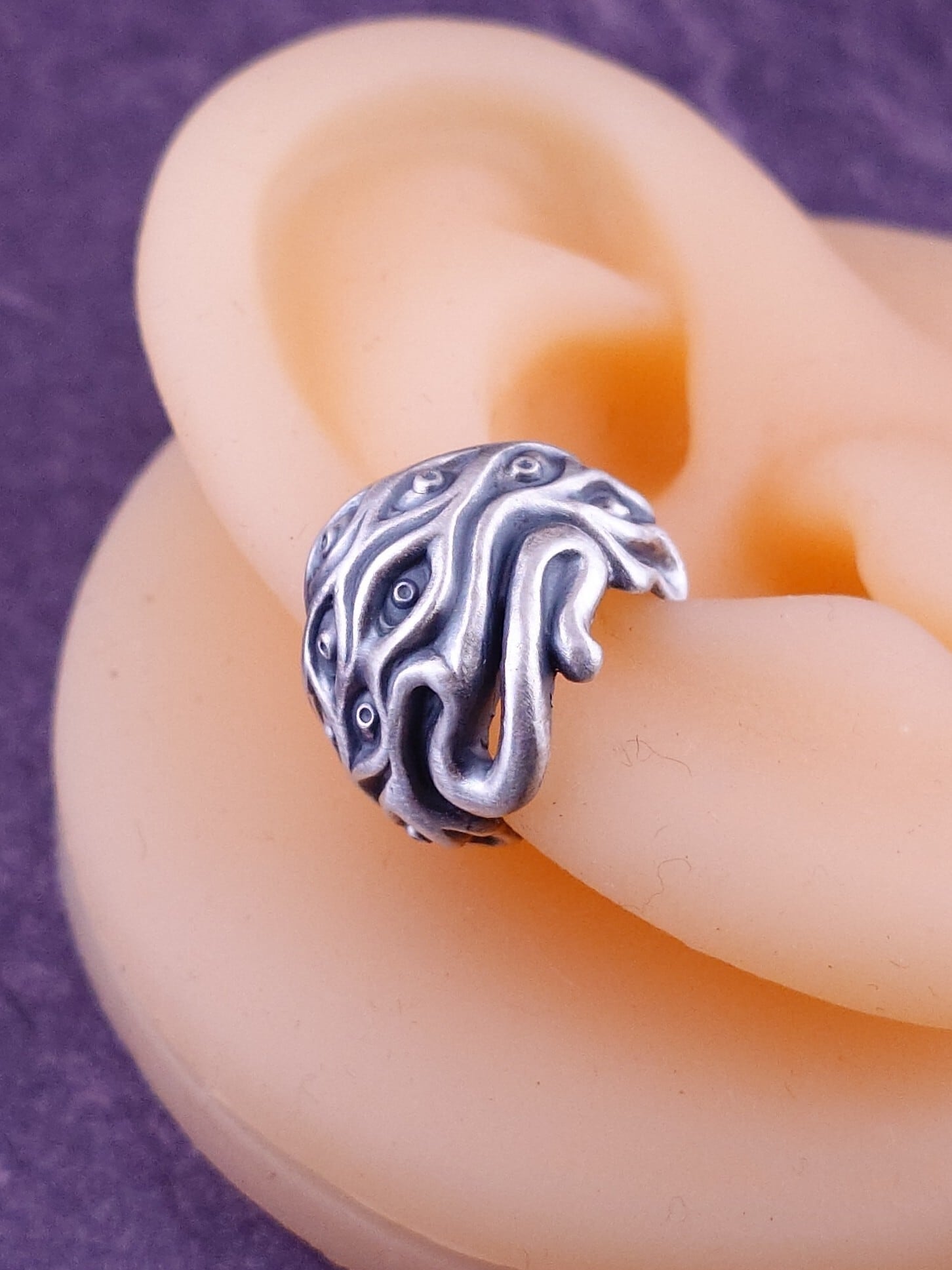 素材:silver925(スターリングシルバー) 「玉虫色に輝く不定形」 クトゥルフ神話における古のものにより作り出されたショゴスをモチーフにしたイヤーカフです。