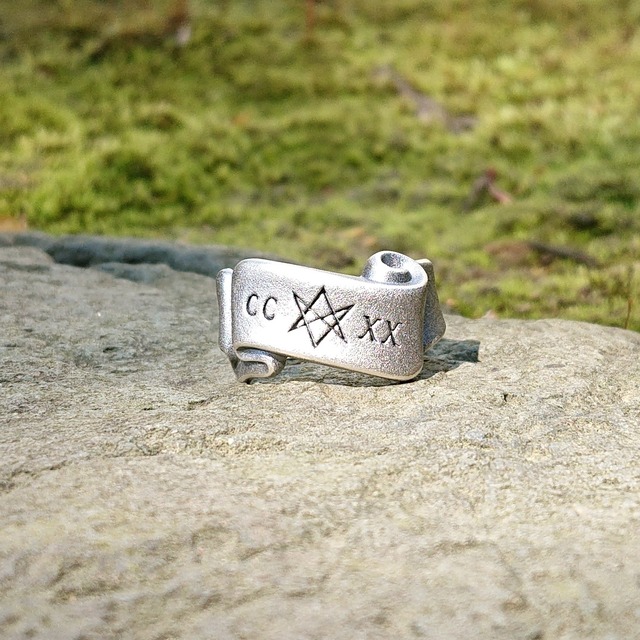 呪文を書いた巻物をモチーフにした指輪です。